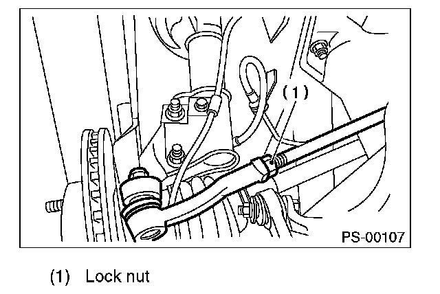 4) If the steering wheel spokes are not horizontal with vehicle set in the straight ahead position after this adjustment, correct it by turning the right and left tie-rods in the opposite direction from each other by the same angle.