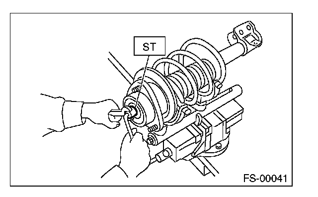 9) Using a hexagon wrench to prevent strut rod from turning, tighten the new self-locking nut with ST.