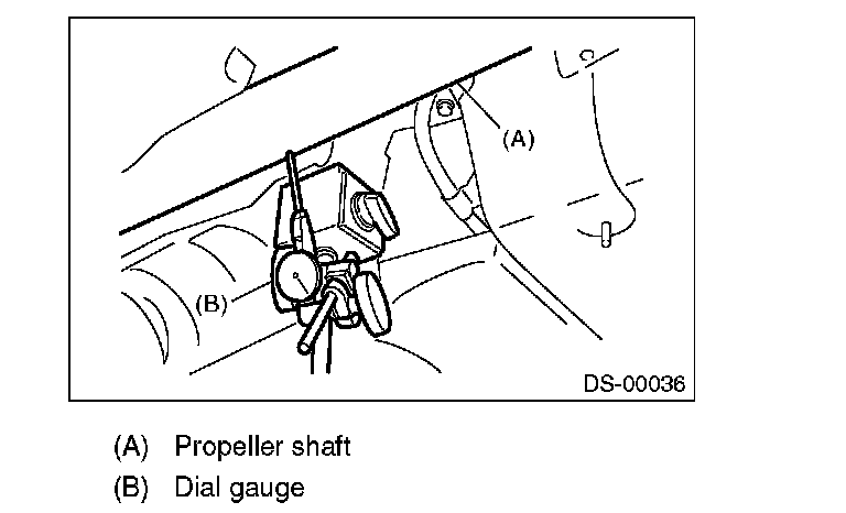 4) Set the dial gauge with its indicator stem at the center of the propeller shaft tube.