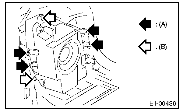 3. Remove the mounting screws (A) and nuts (B) for the woofer.