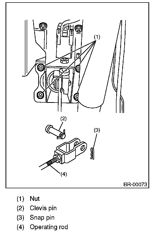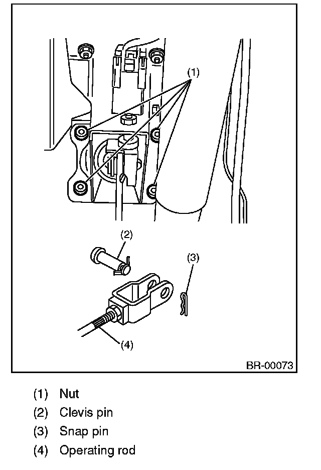 3) Connect the operating rod to brake pedal with clevis pin and snap pin.
