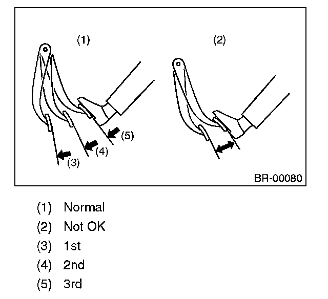 1) While the engine is OFF, depress the brake pedal several times applying the same pedal force, to check for a change in pedal height.