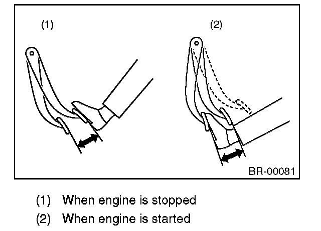 3) As the engine starts, the brake pedal should move slowly toward the floor. If the pedal height does not change, the brake booster is faulty.