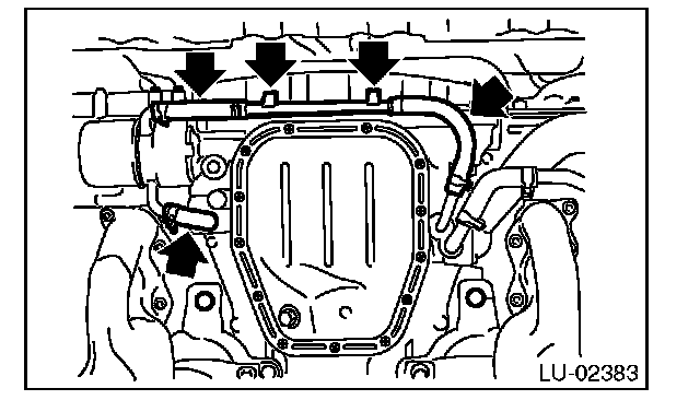 3) Install the water hose to the oil cooler and bolts which secure the engine oil cooler water pipe to the chain cover.