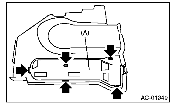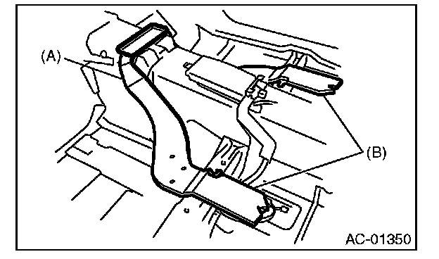 4. Pull off the floor mat to remove the rear center heater duct (A) and rear heater duct LH, RH (B).