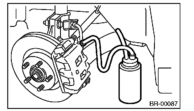 While bleeding air, keep the reservoir tank filled with brake fluid to prevent entry of air.