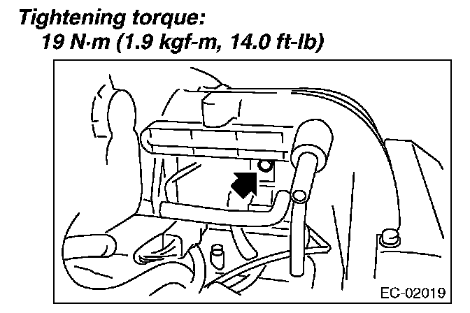 4. Disconnect the connector and hoses of purge control solenoid valve, and then remove the purge control solenoid valve.