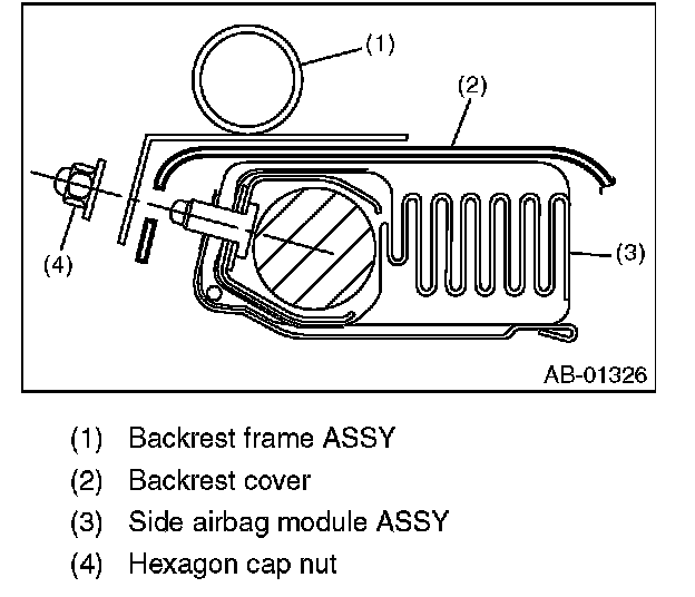 CAUTION: When attaching the side airbag module assembly, make sure to sandwich the backrest cover between the seat backrest side bracket and side airbag module.
