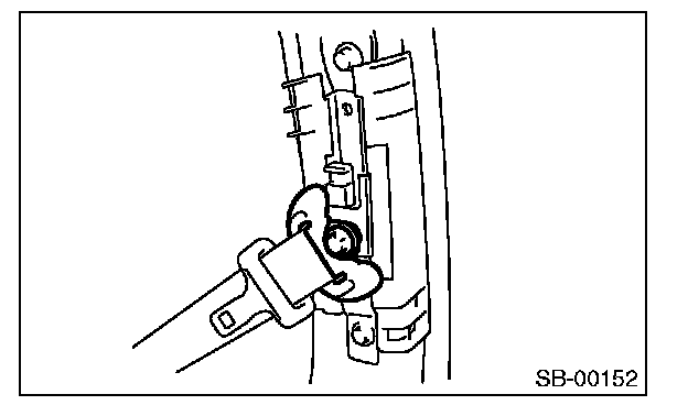 - After the driver's and passenger's inner seat belt assembly installation, check that the seat belt buckle switch operates normally using the Subaru Select Monitor III in {Status Data} of "Airbag System". Improper buckle switch operation may cause airbag system malfunction.