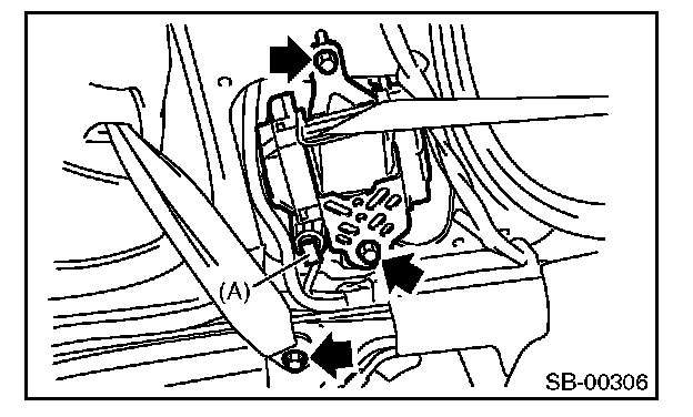 6. Disconnect connector (A) of the pretensioner, and remove the lower anchor bolt and seat belt retractor.
