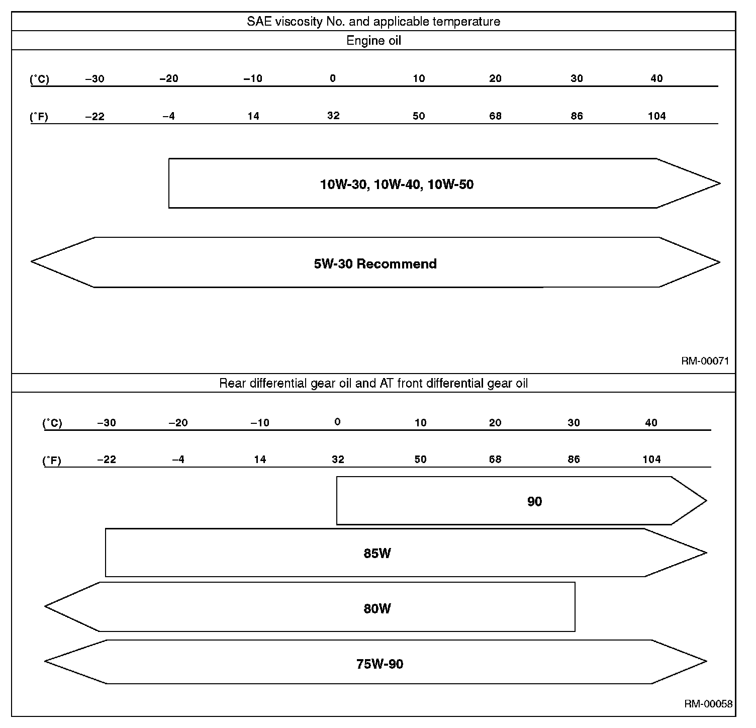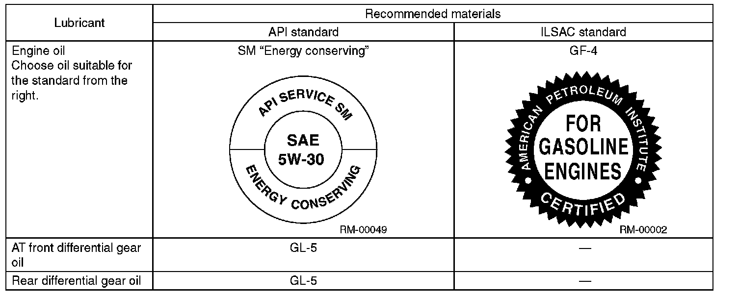 Use the lubricants shown in the table below, or equivalent. See the table below to choose the correct SAE viscosity.