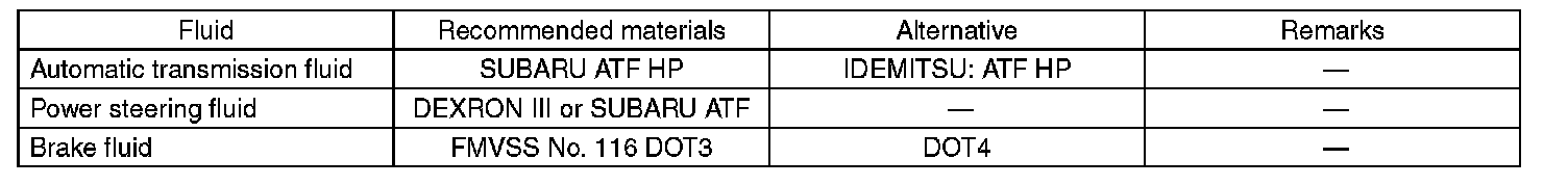 Use the fluids specified in the table below. Do not mix two different kinds or makes of fluid.