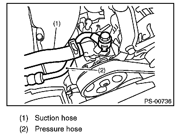6) Disconnect the pressure hose and suction hose from power steering pump.