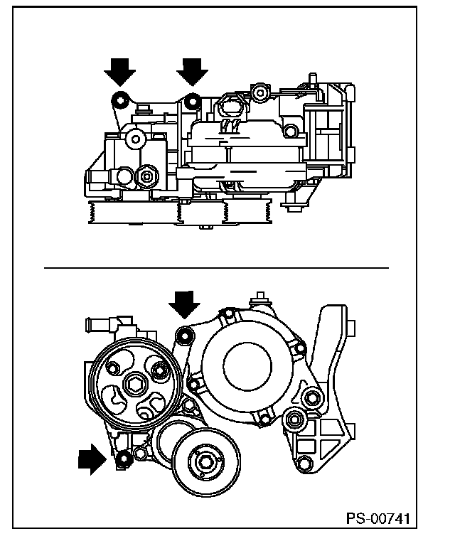 7) Remove the installation bolt of the power steering pump bracket.