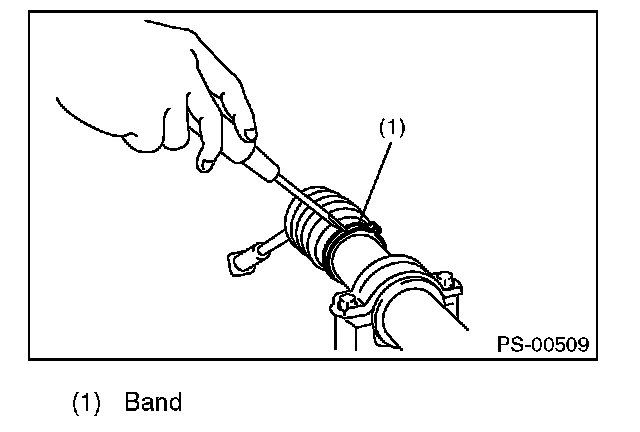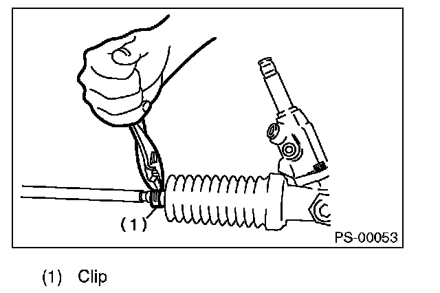 4) Remove the small clip from the boot using pliers, and then move the boot to tie-rod end side.