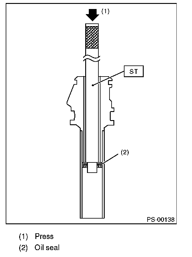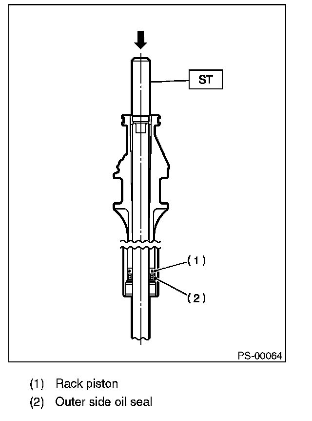 14) Attach the ST on the pinion housing side of rack, and press out the rack with the outer side oil seal.