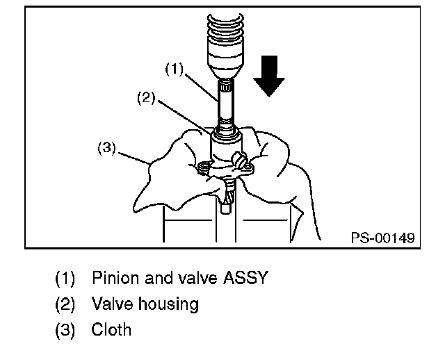 9) Using a press, remove the pinion and valve assembly from valve housing.
