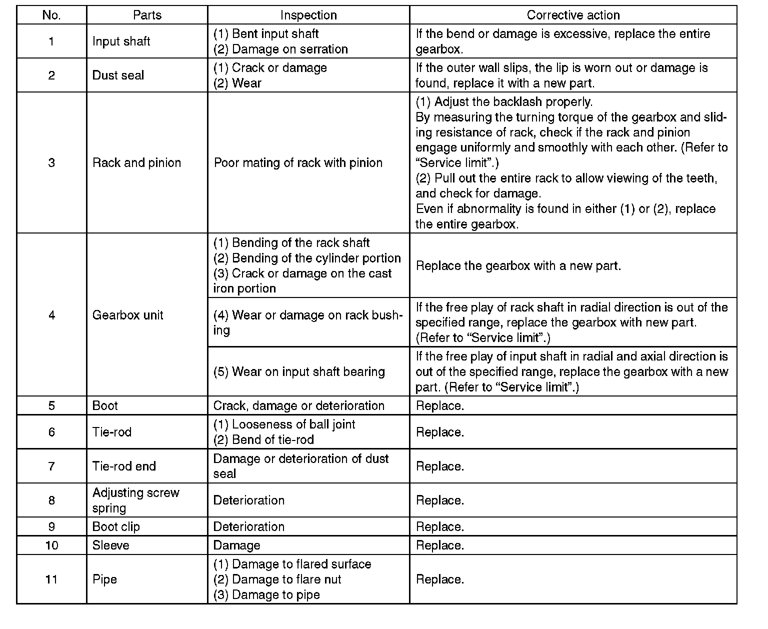 The oil seal of rack housing is damaged. Replace the oil seal and parts that are damaged during disassembly with new parts.