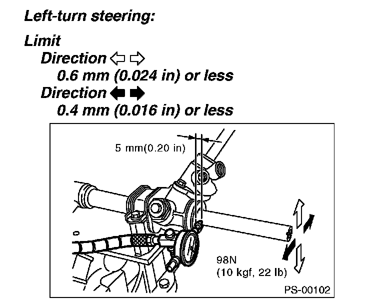 Turn the steering wheel from lock to lock approx. 30 to 40 times with the engine running, then inspect the leaked portion immediately after and several hours after this operation.