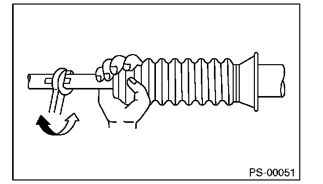 21) After adjusting toe-in and steering angle, tighten the lock nut on tie-rod end.