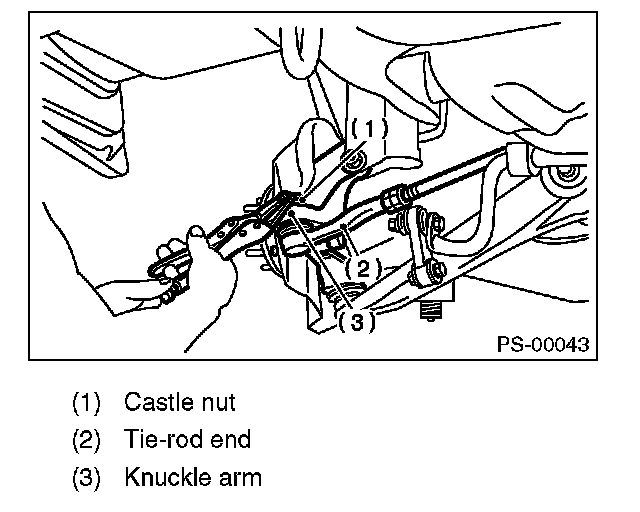 6) After pulling off the cotter pin and removing the castle nut, use a puller to remove the tie-rod end from the knuckle arm.