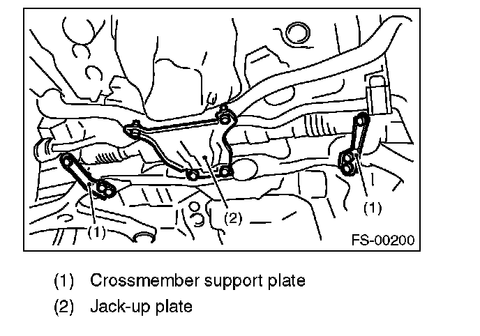 7) Remove the front crossmember support plate, jack-up plate and front stabilizer.
