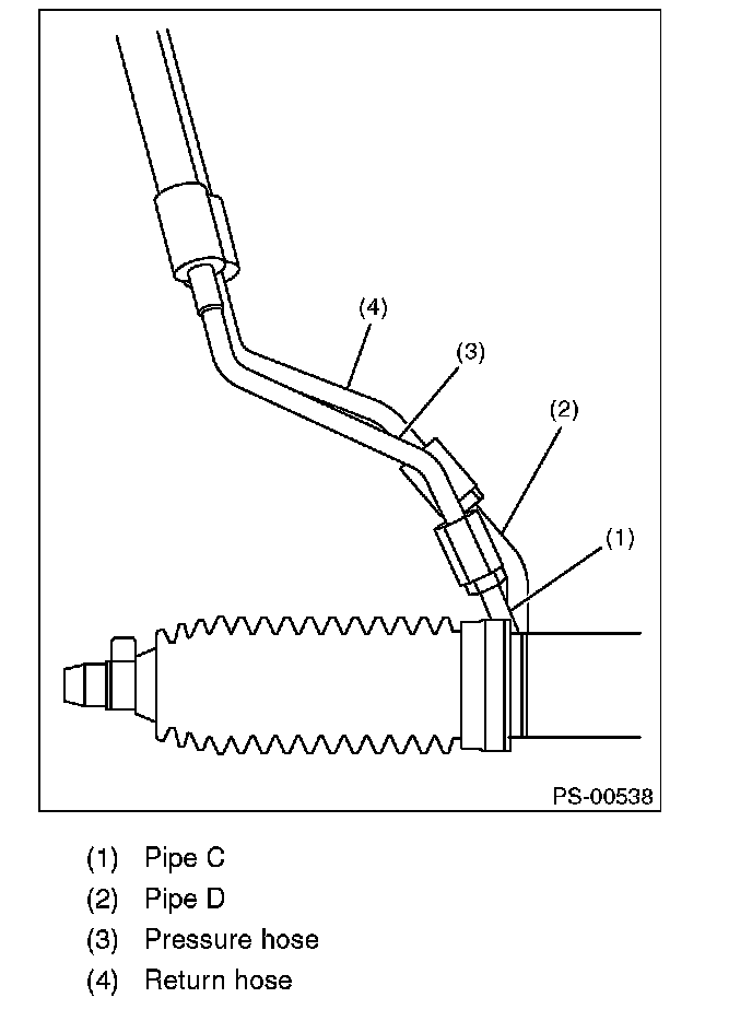 10) Disconnect the pipe C from pressure hose first, then disconnect pipe D from the return hose.