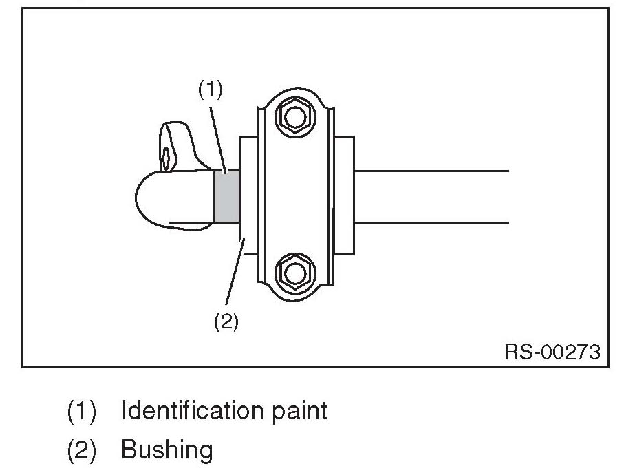 ^ When installing, align the edge of identification paint on the stabilizer to the end face of the bushing.