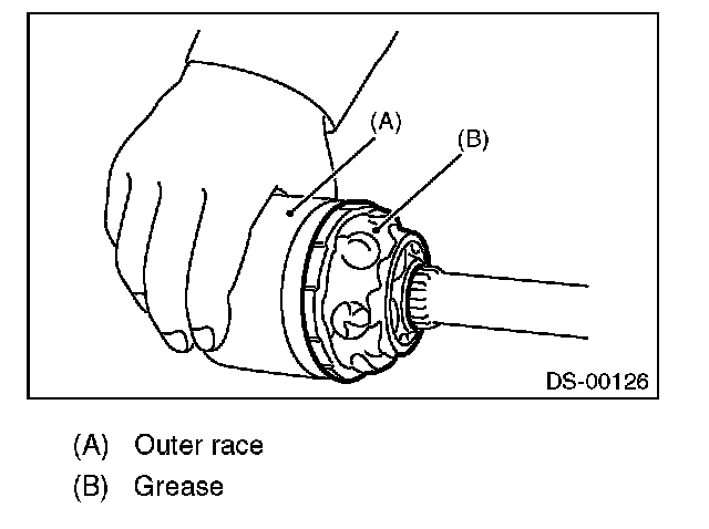 5) Fill 80 to 90 g (2.82 to 3.17 oz) of specified grease into the inner side of the DOJ outer race.