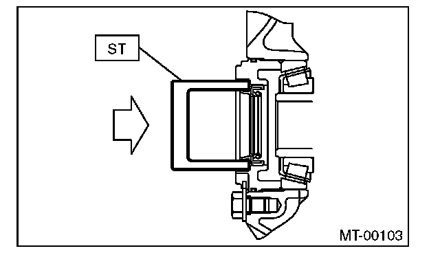 1) Using the ST, replace the differential side retainer oil seal with a new seal.