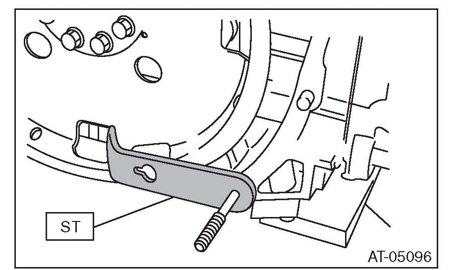 2) Use the ST to lock the crankshaft, and remove the drive plate.