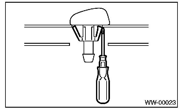3. Push the claw of the nozzle from the backside of rear gate panel with a flat tip screwdriver or equivalent, and remove the washer nozzle.