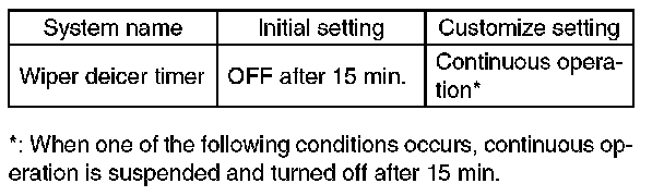 NOTE: Wiper deicer system can be customized on the Subaru Select Monitor.