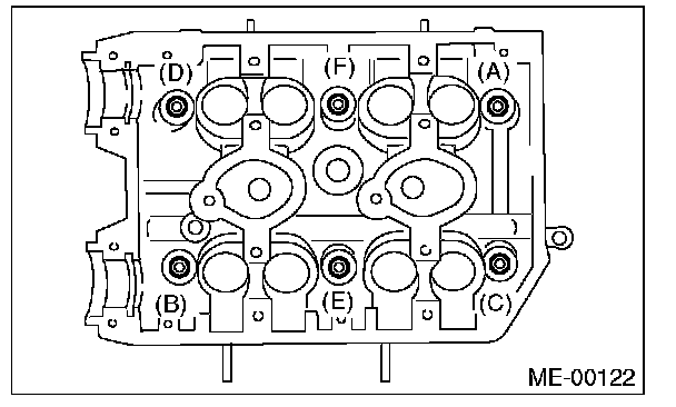 13) Remove the cylinder head bolts in alphabetical order shown in the figure.