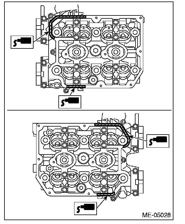 (2) Apply liquid gasket to the specified point of the cylinder head.