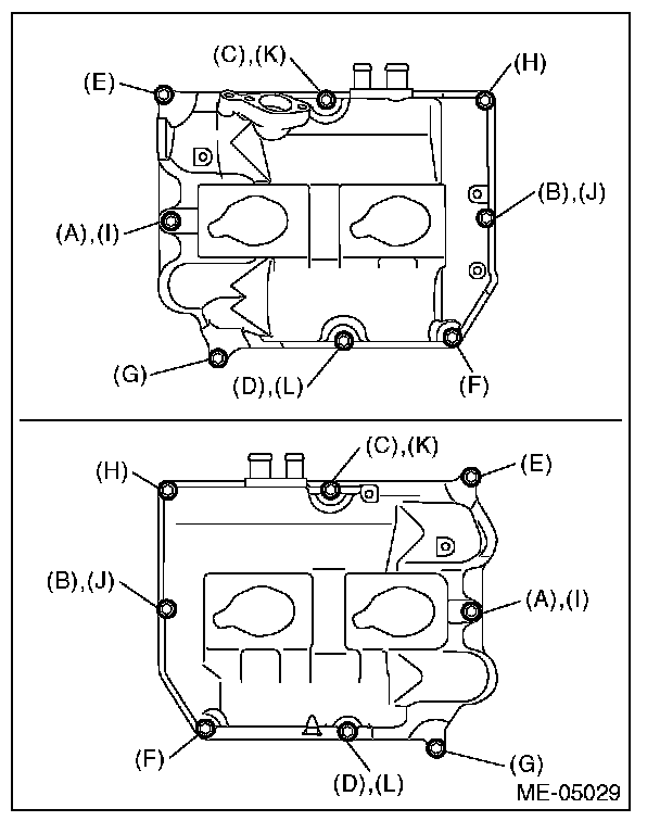 (4) Temporarily tighten the rocker cover bolts in alphabetical order shown in the figure, and then tighten to specified torque in alphabetical order.