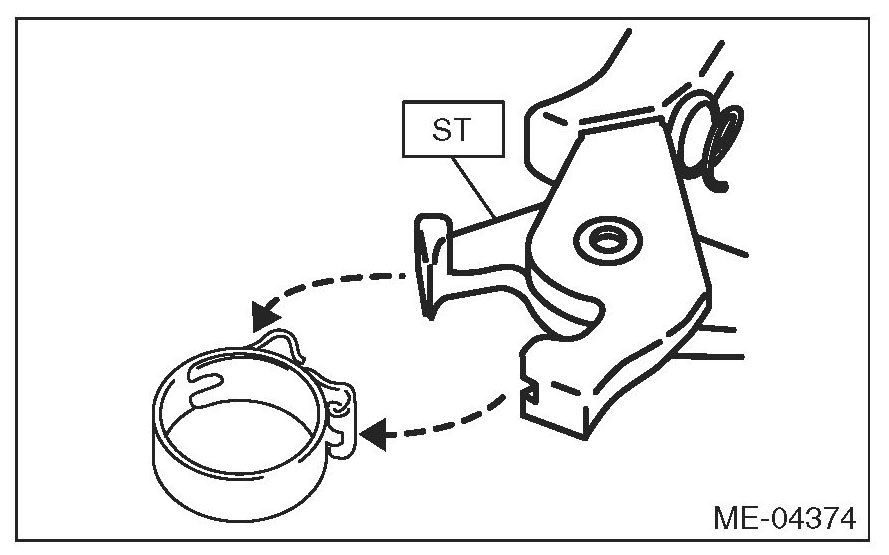 Use a new clamp for the PCV hose clamp, fit the cut out in the ST with the protrusion on the clamp as shown in the figure, and lock the clamp.
