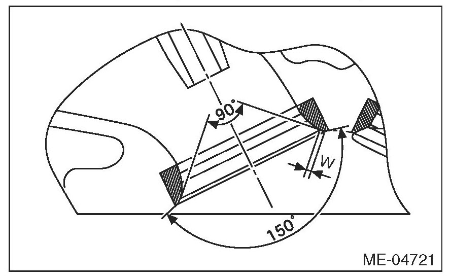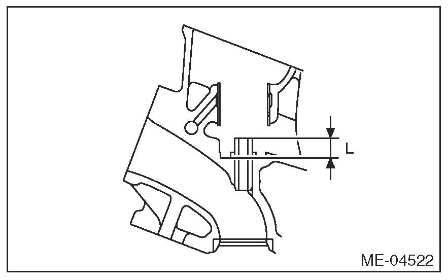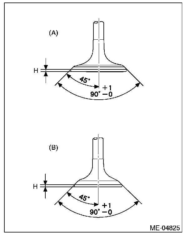 1) Inspect the flange of valve and valve stem, and replace the valve with a new part if damaged, worn, deformed, or if dimension "H" in the figure is outside of the specified limit.
