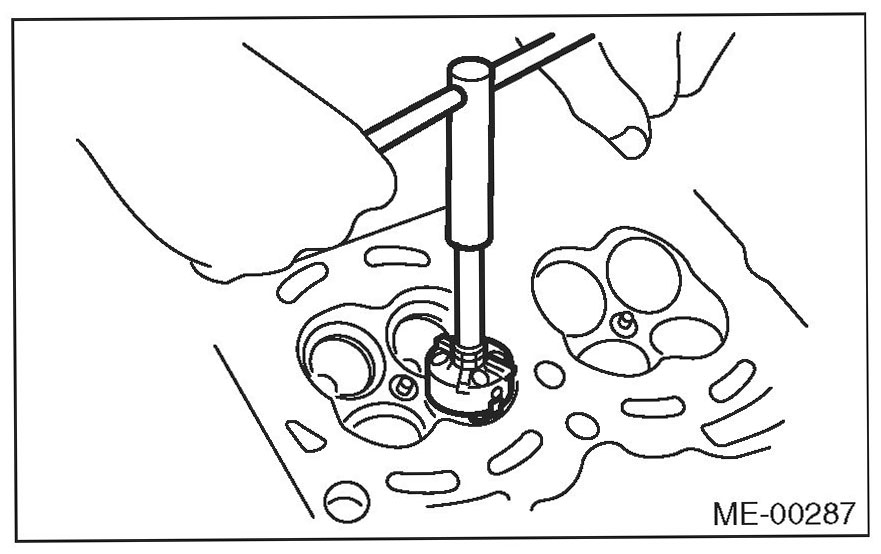 (7) Ream the inside of valve guide using ST. Put the ST in valve guide, and rotate the ST slowly clockwise while pushing it lightly. Bring the ST back while rotating it clockwise.