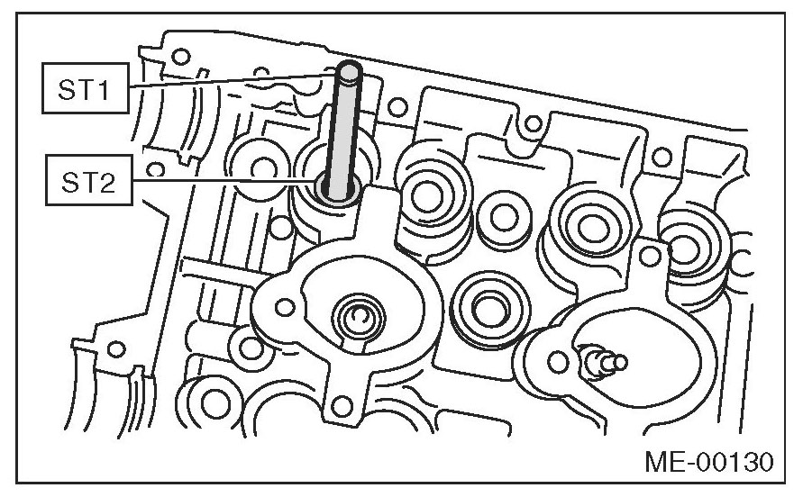 (2) Insert the ST2 into valve guide and press it down to remove the valve guide.
