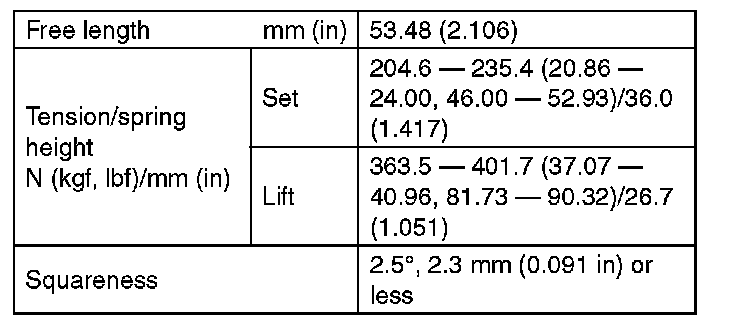 1) Check the valve springs for damage, free length, and tension. Replace the valve spring if it is not within the standard value presented in the table.