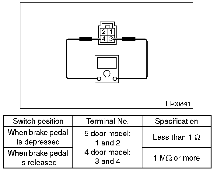 2. Replace the stop light switch if the inspection result is not within the standard value.
