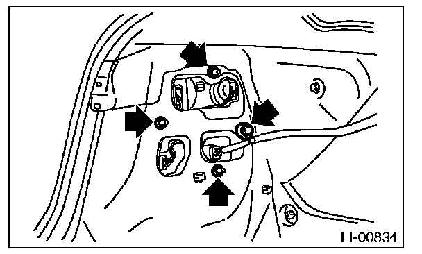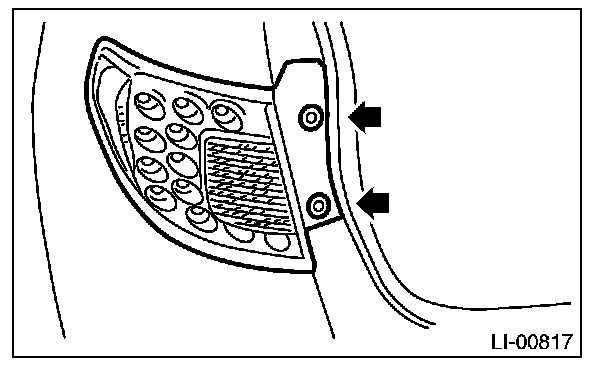 2. Remove the bolts, and then detach the rear combination light by pulling it to the rear side of vehicle.