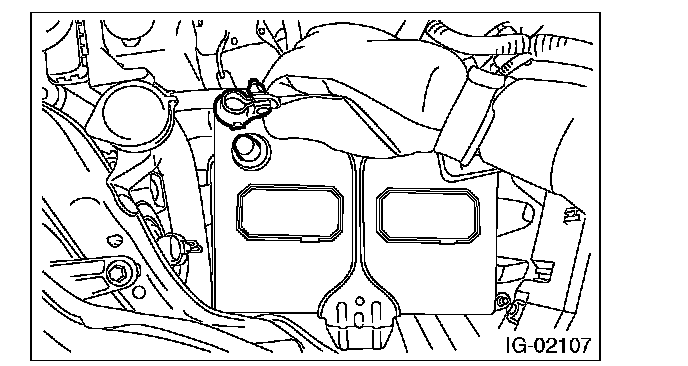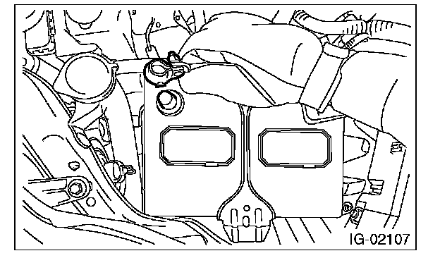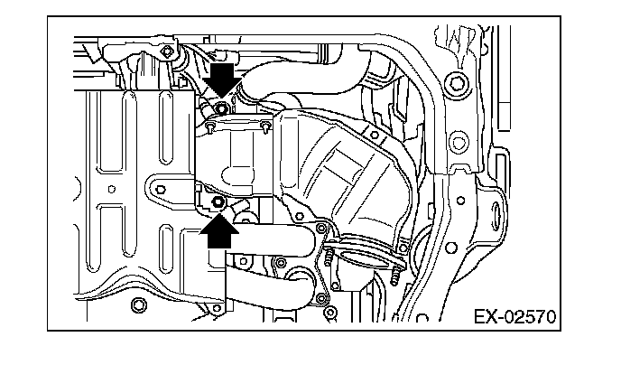 3) Install bolts which hold the oil catch tank stay and engine cover to the turbocharger lower stay.