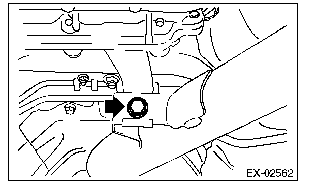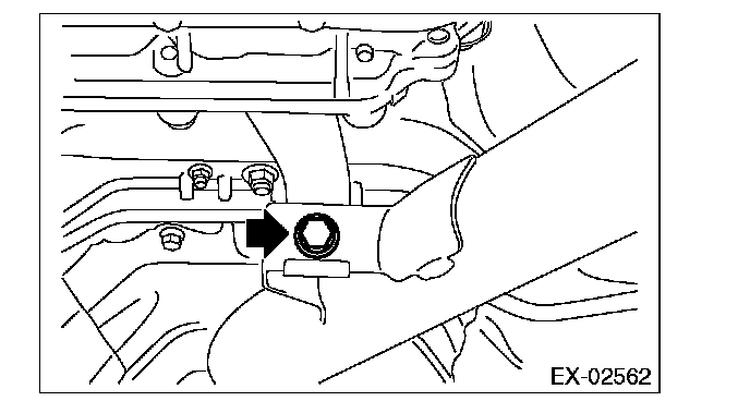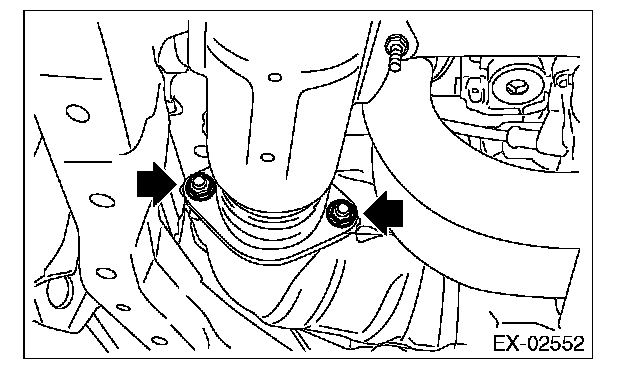 8) Remove the bolt which holds center exhaust pipe (rear) to the hanger bracket, and remove the center exhaust pipe (rear).