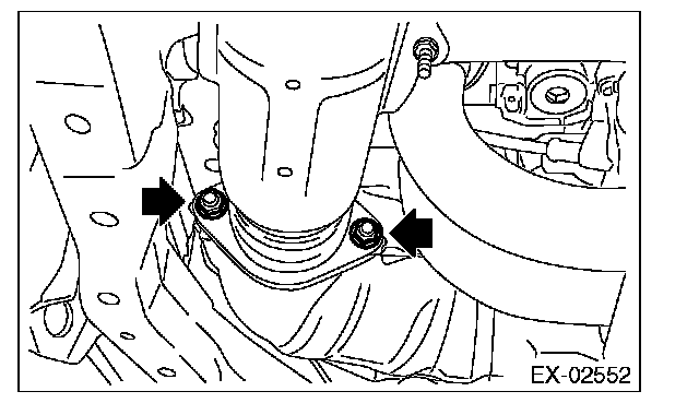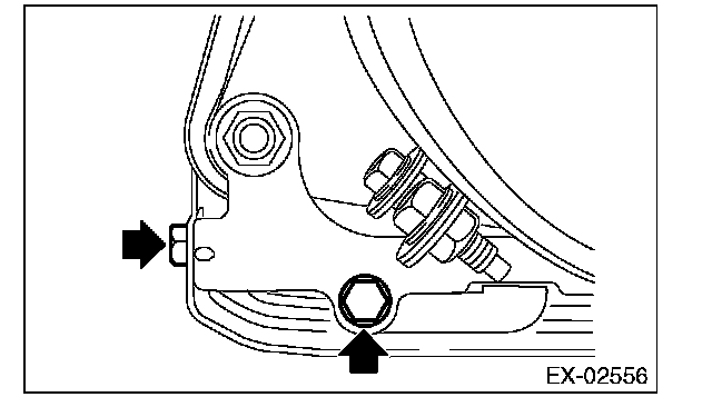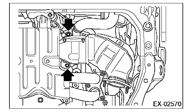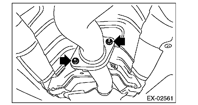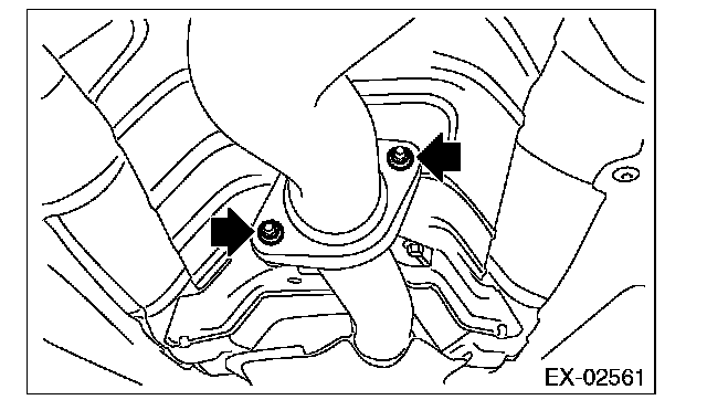 8) Tighten the bolts which hold center exhaust pipe (rear) to the hanger bracket.