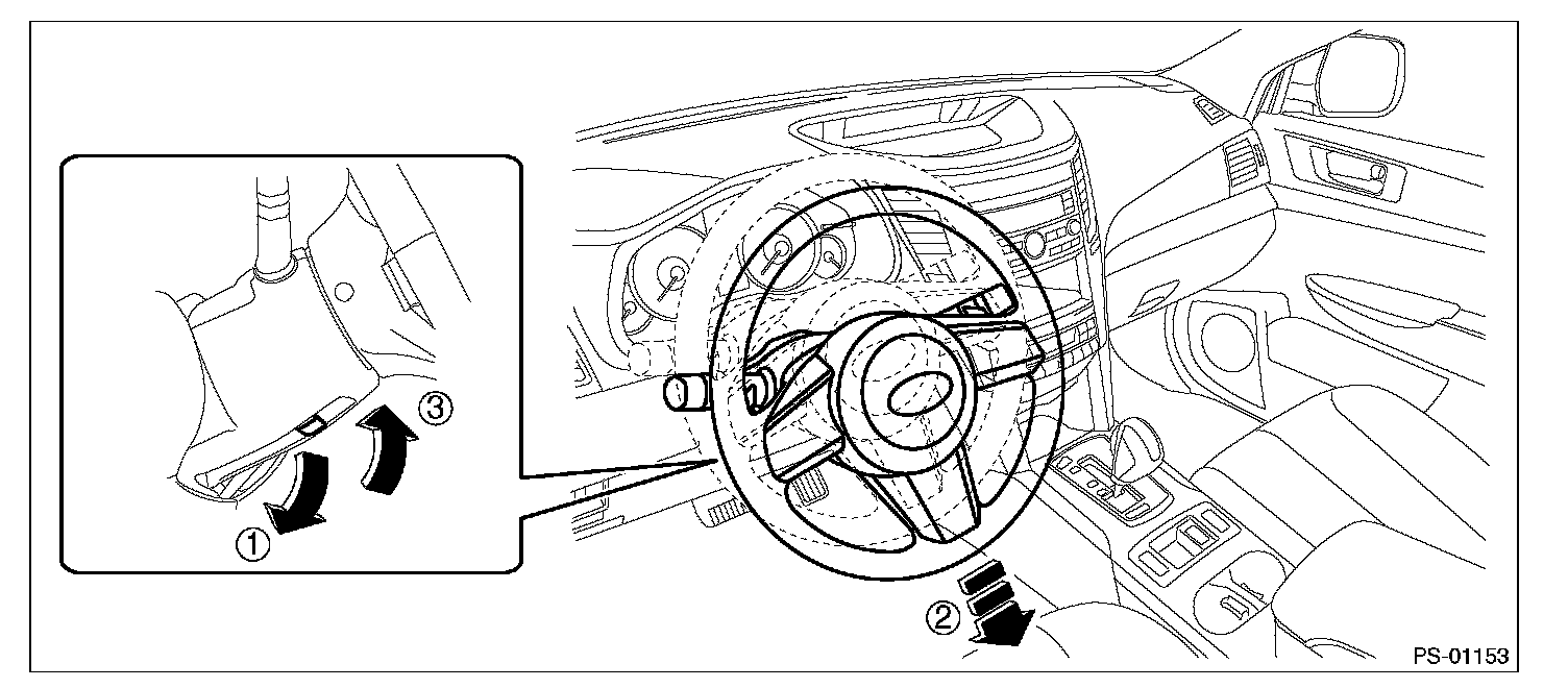 1) Adjust the tilt position of the steering column to the lowest position and lock the tilt lever.