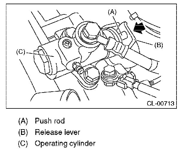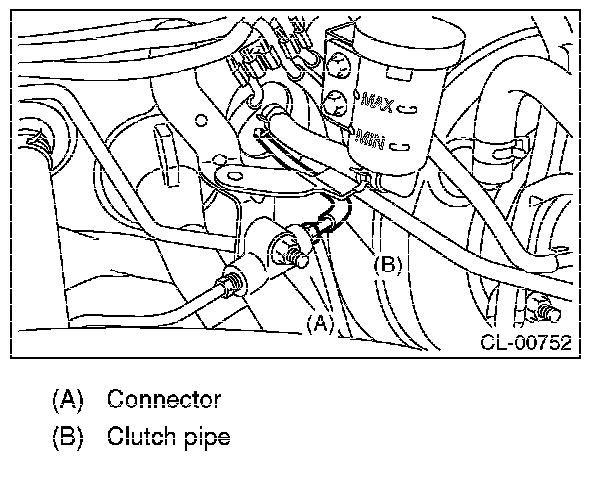 7) If the clutch fluid level does not increase or push rod does not retract, readjust the clutch pedal.