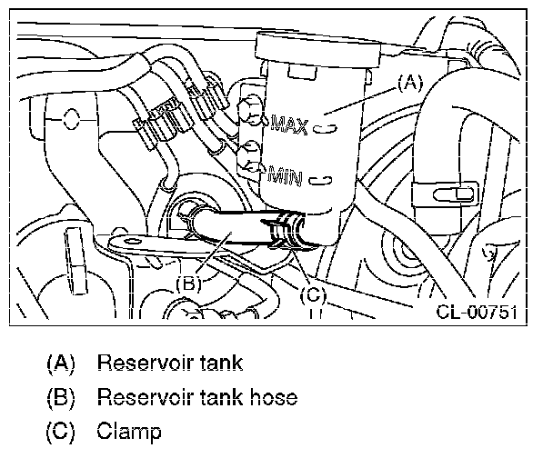 7) Disconnect the reservoir tank hose from the reservoir tank.