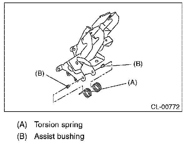 Before installing the torsion spring, apply grease to the assist bushing and torsion spring bushing.